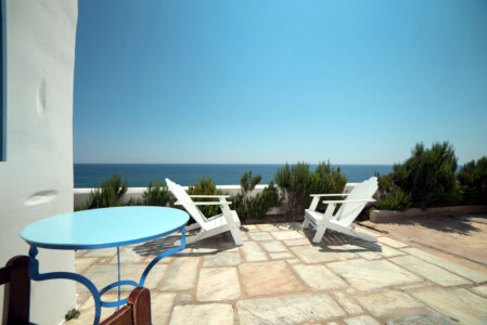 Μέσα στον ολάνθιστο κήπο με λεβάντες, δεντρολίβανο, ρίγανη και άλλα μυρωδικά φυτά της ελληνικής γης, βρίκονται οι λευκές κατοικίες του ξενοδοχείου, με τις γαλάζιες λεπτομέρειες να εναρμονίζονται με το μπλε της θάλασσας. Στο εσωτερικό τους συνδυάζονται αρμονικά το λευκό με τις γήινες απαλές αποχρώσεις, λιτά έπιπλα και λεπτομέρειες από ξύλο και σκυριανό μάρμαρο. Τα εργονομικά στρώματα, ο ήχος του κύματος και το αεράκι που μπαίνει από τα παράθυρα κάνουν τον ύπνο μία ξεχωριστή εμπειρία