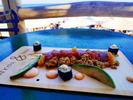 Το φαγητό στη Σκύρο είναι ιδιαίτερο και έχει ξεχωριστή αξία για τους ντόπιους, γιατί βασίζεται στην τοπική παραγωγή, το μέλι, το αιγοπρόβειο κρέας, τα τυριά και τις ψαριές της θάλασσας. Σε όποιο ταβερνάκι και αν καθίσετε μην ξεχάσετε να ζητήσετε Σκυριανή φέτα, κεφαλοτύρι και «ξινοτύρι». Η φέτα είναι κατσικίσια αλλά πιο μαλακή στη γέυση και απαλή στην υφή της καθώς εμπλουτίζεται με πρόβειο γάλα. Το περίφημο «ξινοτύρι» ή «πηχτογυαλένια» είναι ένα μαλακό τυρί που μοιάζει με στραγγισμένο γιαούρτι, τόσο νόστιμο που δύσκολα μένει στο τραπέζι. Η Σκυριανή φάβα λένε πως είναι γευστικά ανώτερη της Σαντορίνης. Το πιο διάσημο πιάτο της σκυριανής κουζίνας είναι η αστακομακαρονάδα, ενώ τιμητική θέση έχει και ο τραχανάς, σε διάφορες παραδοσιακές συνταγές όπως τραχανάς με σαλιγκάρια, τραχανόπιτες, πιτάκια με κολοκύθα και τραχανά. Η Σκύρος είναι το μέρος που θα βρείς φρέσκο ψάρι χταπόδι ή αστακό φρεσκοψαρεμένο ακόμα και τον Αυγουστο. Εναλλακτικά μπορεί κανείς να δοκιμάσει τα φημισμένα παϊδάκια από ντόπια κατσίκια.
