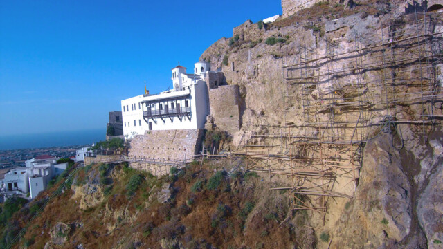 Πάνω από τη Χώρα της Σκύρου χτισμένο σε ένα βράχο 179 μέτρων είναι χτισμένο το επιβλητικό καστρομονάστηρο του Αγίου Γεωργίου, σήμα κατατεθέν της ιστορίας της Σκύρου. Από την εποχή του Λυκομήδη, τα βυζαντινά χρόνια, την ενετοκρατία και την τουρκοκρατία, το κάστρο υπήρξε πάντοτε ως το κέντρο όλων των ιστορικών εξελίξεων στο νησί, προσφέροντας ταυτόχρονα ασφάλεια από τις επιθέσεις των πειρατών και άλλων επιδρομέων. Σήμερα διασώζονται υπολείμματα οχυρώσεων και τειχών όλων των ιστορικών περιόδων: πελασγικά, κλασσικής αρχαιότητας, βυζαντινά, ενετικά.