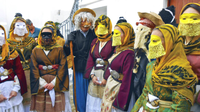 Μοναδική είναι η ατμόσφαιρα στη Σκύρο κατά την περίοδο του Καρναβαλιού, καθώς οι σκυριανές Αποκριές θεωρούνται οι καλύτερες σε όλο το ελληνικό Αρχιπέλαγος. Στις γιορτές του Τριωδίου επικρατεί το έθιμο του Γέρου και της Κορέλας. Ο Γέρος είναι ντυμένος με μια μαλλιαρή μαύρη κάπα και φοράει μάσκα από έρμα κατσικιού και στη μέση ζώνη με κουδούνια κοπαδιού. Τον συνοδεύουν η Κορέλα, νεαρός άνδρας ντυμένος με παραδοσιακή γυναικεία φορεσιά, και ο Φράγκος, ο οποίος φοράει μάσκα και ένα μεγάλο κουδούνι στη μέση του. Οι περίφημοι Κουδουνάτοι θα σας ξεσηκώσουν με τον ήχο από τα κουδούνια τους και το επανάληπτο θέαμά τους. Το δεύτερο σκέλος του σκυριανού Καρναβαλιού είναι γνωστό ως Τράτα και περιλαμβάνει την απαγγελία σατιρικών στίχων. Όλο το νησί, ντόπιοι κι επισκέπτες, παρασύρεται σε ένα αξέχαστο διονυσιακό γλέντι.